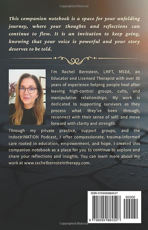 The Companion Notebook to Restart and Restore was created as the partner to the Restart and Restore Journal. While the journal provides a structured path for healing, this companion notebook gives you additional space, inspiration, and guidance to continue your journey. It is designed for the survivors of cults, high-control groups, narcissistic abuse, and coercive relationships who want a safe and supportive place to process, reflect, and heal.
